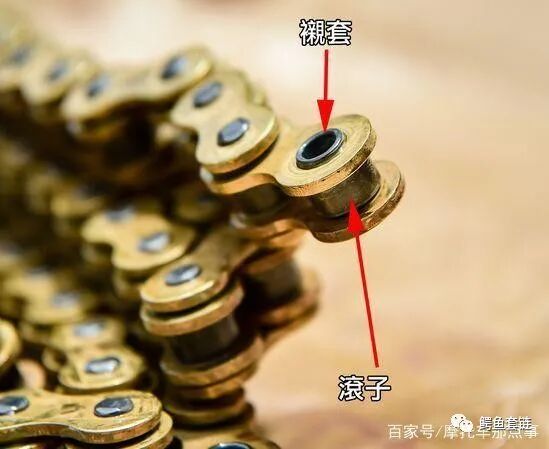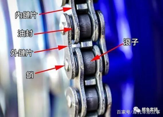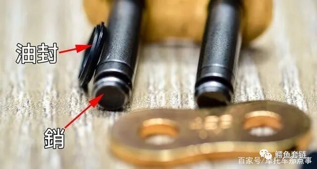 所谓的油封链条, 就是在内外链片中间有一个油封 (如图上红圈圈处), 将润滑油包在中间以达到链条润滑的状态。如果没有这个油封, 就称为非油封链条。